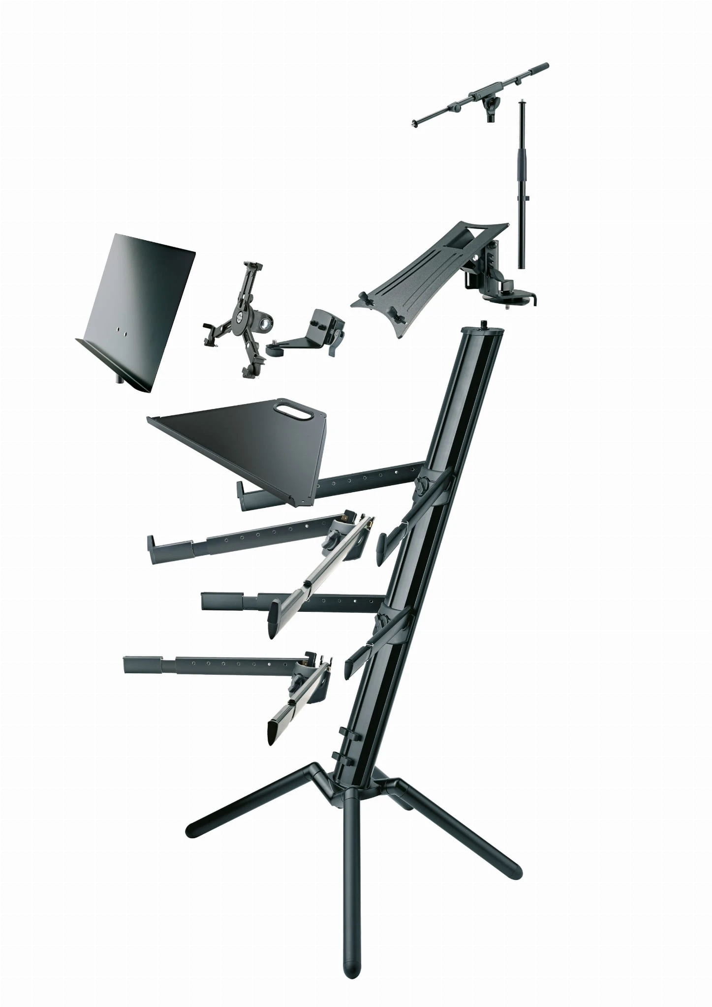 K&M Spider Pro to najbardziej popularny statyw do kilku klawiszy. Łączy w sobie niemiecką jakość połączoną z lekkością, stabilnością i stosunkowo małymi gabarytami. Posiada parę regulowanych, wysuwanych teleskopowo ramion oraz dodatkową parę wysuwanych ramion.
