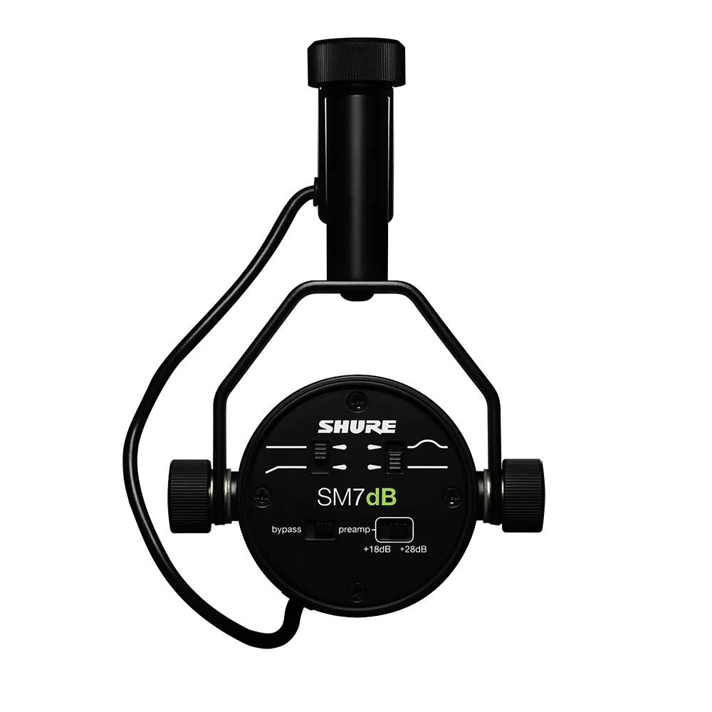 SM7dB ma wbudowany przedwzmacniacz zaprojektowany przez Shure, zapewniający wystarczającą moc wyjściową do pracy z dowolnym interfejsem XLR. Zapewniając do +28 dB niskoszumowego, równego, transparentnego wzmocnienia, wbudowany przedwzmacniacz zachowuje pasmo przenoszenia mikrofonu zapewniając czyste, klasyczne brzmienie. Do obsługi przedwzmacniacza wystarczy interfejs lub mikser oferujący zasilanie phantom +48V.